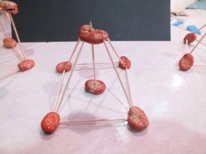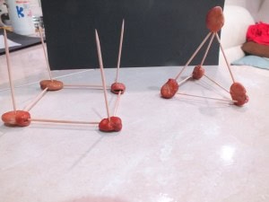 The way I did it was to build the base first (triangular or square base) and then to stick in some more toothpicks to build it up. Depending on the age of the children, you can add some more features on your 3D shapes. Obviously, you can talk how different are they from the 2D shapes! im sure they will notice the differences!