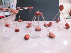 It’s better to choose some large beans, I chose whole broad beans, put them in a bowl, pour water to cover the beans and leave them overnight to stay and soak. The next morning, you can start building your 3D Geometric shapes, using toothpicks and the soaked, soft beans.