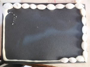 Choose black or dark green paper. Squeeze glue around the edges and start glueing pumpkin seeds all around as you can see in the picture.