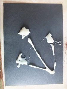 You may want to decorate the card a bit more and put a bit of colour on it. I put some random glue at the bottom of the page and glued some dried sage and cut some onion bag stripes (when you buy a bag of onions, the ‘bag’ is usually like a net, coloured red or gold and i absolutely love it for making decorations with children because it is glossy and when you cut the net it looks spiky).