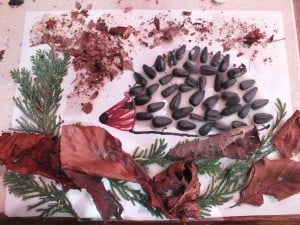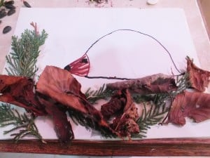Glue some dried leaves, sticks, branches at the bottom of the page to symbolise the ground.
